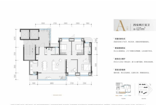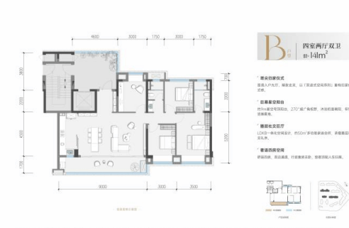 格局:LDKB一体化设计,客厅开间约6.8米,连接双阳台;主卧套房带独立卫浴及衣帽间。